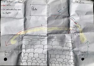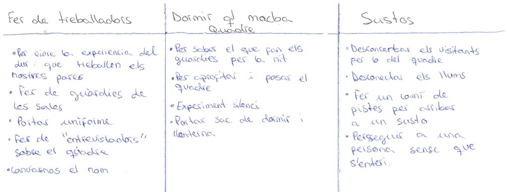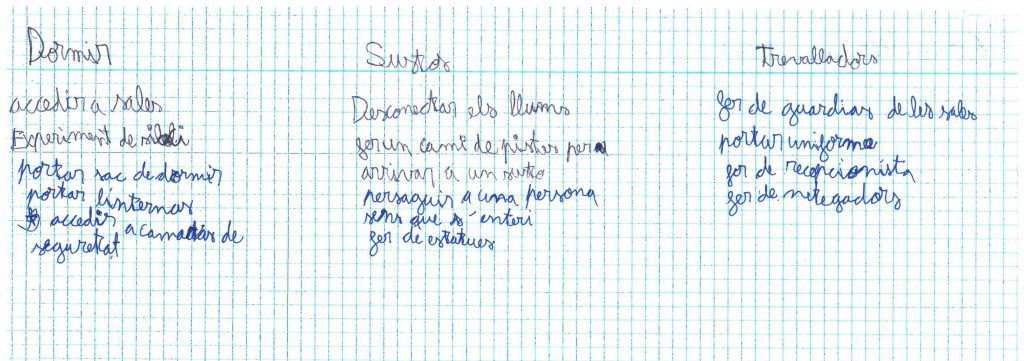 Abans de fer el plànol vàrem fer tres activitats que es veuen reflectides en la ciutat: Un dibuix de com ens imaginàvem els edificis i de com ens agradaria que fossin, aquests edificis no hi són a la ciutat donada la seva complexitat. Vam fer unes derives per Sarrià i mentre caminaven anàvem dibuixant les cases i edificis que trobàvem interessants. I, per acabar, vam fer un joc que es deia “The game of kin” que consistia en que estàvem a un habitat on hi faltava un element fonamental per viure i havíem de crear un mutant entre diferents animals per intentar sobreviure en aquell habitat hostil. Tot ho vam fer per alliberar-nos de la nostra realitat i així poder imaginar-nos la ciutat que ens agradaria, que ens imaginem, aquesta ciutat utòpica que hem dissenyat.