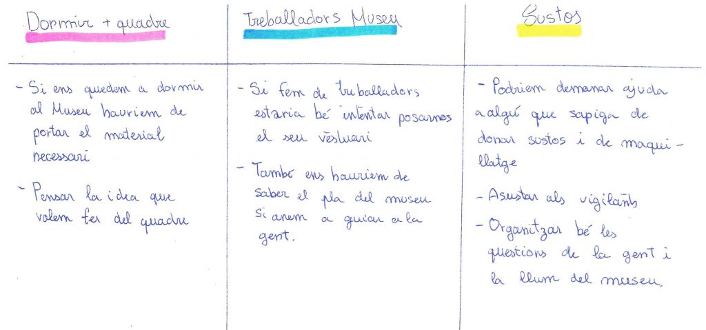 Tota aquesta idea de ciutat la vam treure parlant de què ens agradaria que hi hagués a la nostra ciutat del futur, com ens agradaria que fos una ciutat. On cada un de nosaltres pugues decidir com funciona cada part, com treballaríem, que cada un de nosaltres pugués tenir alguna cosa a dir o algun lloc que li agradés que hi hagués a la ciutat.